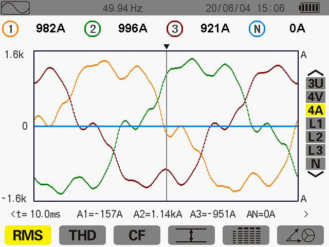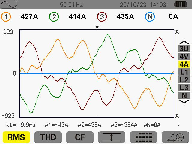 此次測(cè)量在其 ABC 電流分別為 427A 414A 435A 當(dāng)天生產(chǎn)使用其變壓器為60%,未滿負(fù)載運(yùn)行中。