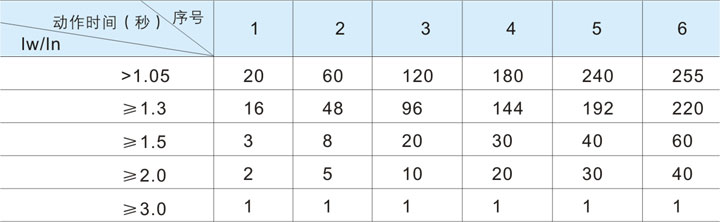注:表中l(wèi)w為工作電流,ln為額定動(dòng)作電流。