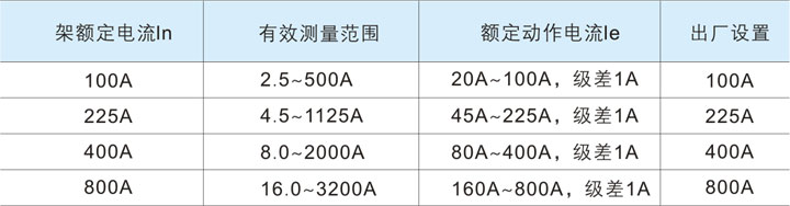額定動(dòng)作電流值可在上表中"額定保護(hù)電流le設(shè)置范圍"內(nèi)任意設(shè)置。