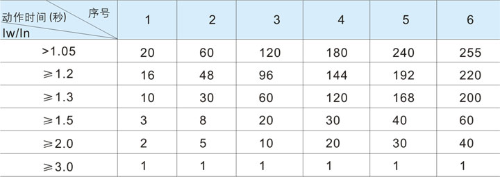 過流反時限延時保護(hù)曲線代碼:1~6,出廠默認(rèn)為1