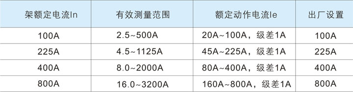 注:表中l(wèi)w為工作電流,ln為額定動作電流。
