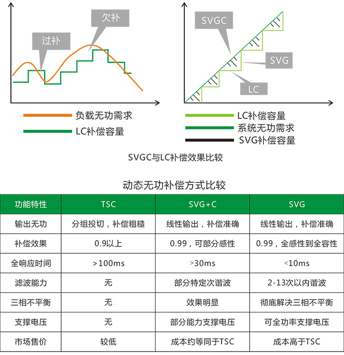 傳統(tǒng)無功補償采用的是慢速開關(guān)器件對電容器分組投切的方式,存在級差,補償精度差,響應速度慢。SVG采用的是由高速開關(guān)器件產(chǎn)生補償電流的方式,不存在補償精度的問題,而且響 應速度快。