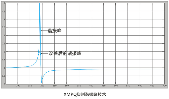 在實際應用中,用戶使用的傳統(tǒng)電能質(zhì)量治理形式多種多樣,有不串電抗器的純電容C、有串0.4%~14%電抗器的TSC、有無源濾波LC,XPQM采用抑制諧振峰、屏蔽指定次諧波輸出等方式,保證了與任意無源器件并聯(lián),都能可靠運行。尤其是與純電容C并聯(lián)而能可靠運行,XMPQ抑制諧振技術(shù)達到國際先進水平。